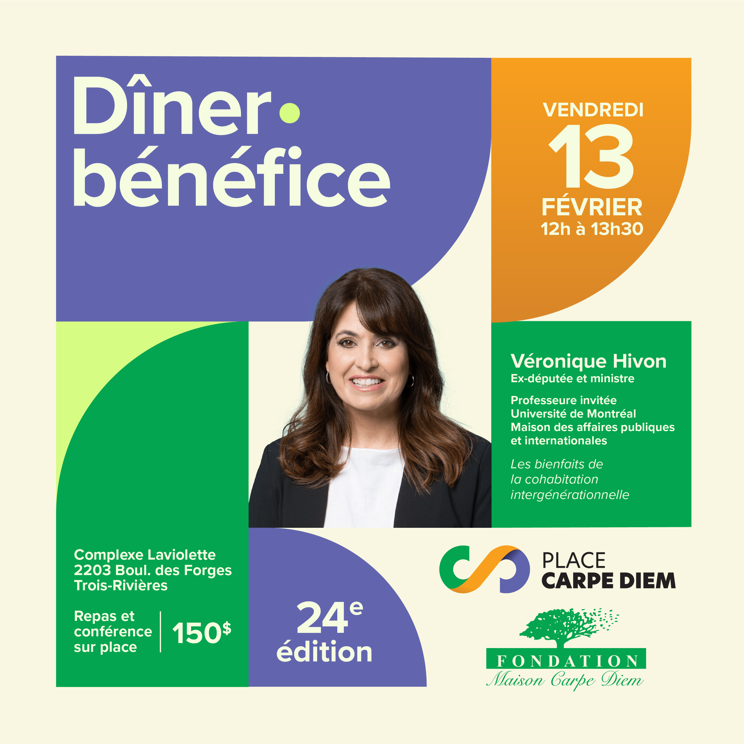 « Son parcours post-politique confirme sa volonté de conserver un engagement significatif et de contribuer à l’élaboration de solutions de société, tant dans le milieu académique que médiatique et communautaire, et cela rejoint grandement les idées et la mission de Carpe Diem. Nous sommes donc honorés de recevoir Mme Hivon comme conférencière. Il s’agira certainement d’une conférence pertinente et très intéressante pour nos invités, et nous avons bien hâte de l’entendre. », souligne Jean Poliquin, président de la Fondation Maison Carpe Diem.